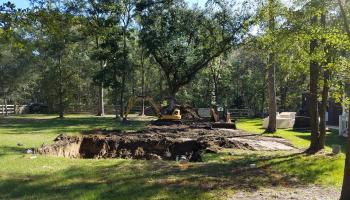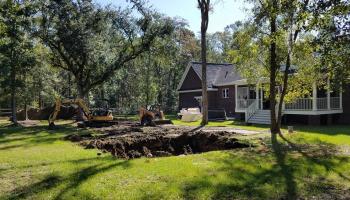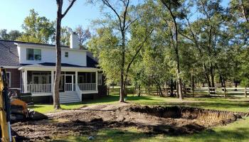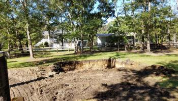 Excavation for a vinyl-lined pool is a job for an experienced backhoe operator. Normally the side excavation is approximately two feet beyond the finished pool perimeter to allow for assembly and a concrete footing to be installed.